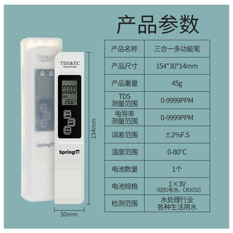 🫗 品名:MIUS 3合1 TDS導電率 溫度 檢測筆