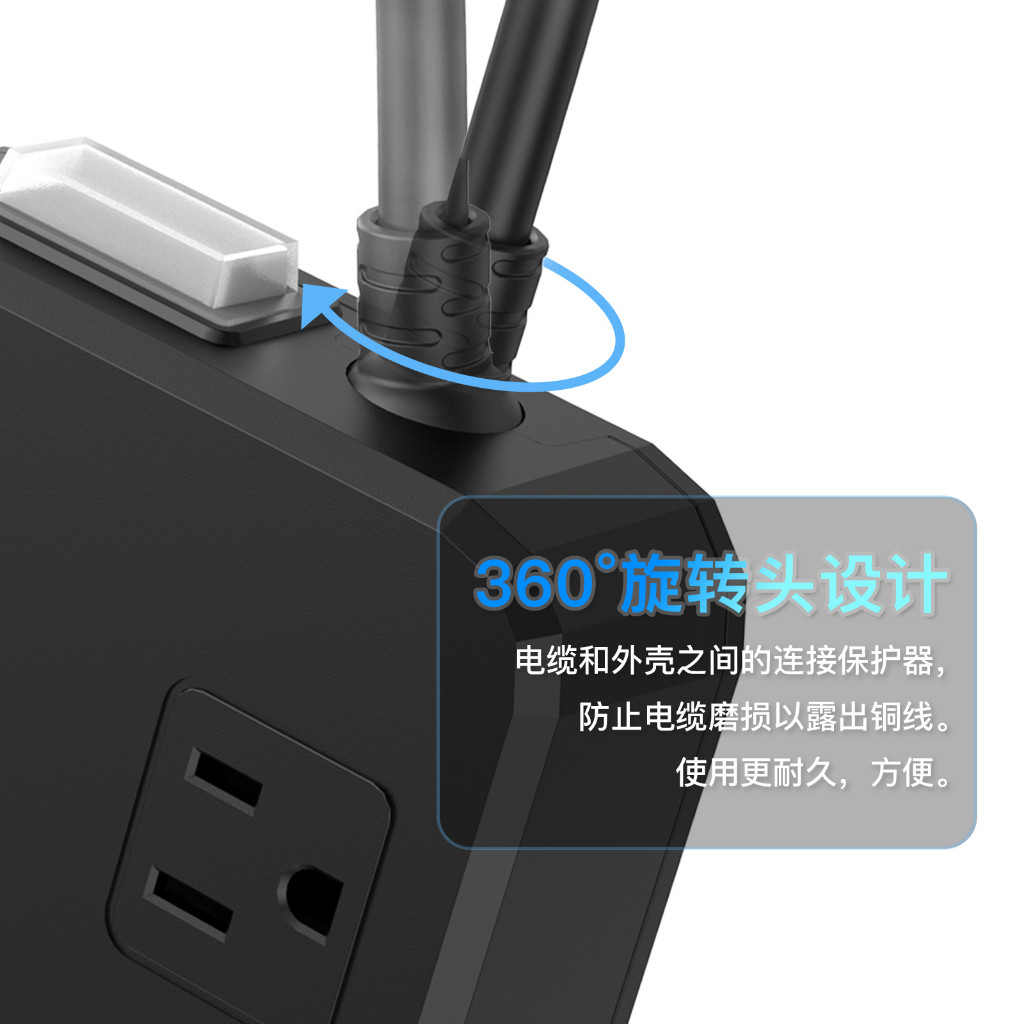 ⏩ 六大核心功能:品字接頭、防濺水保護、安全門插孔、防漏電 防短路、360o旋轉電源線、極性隨意插頭