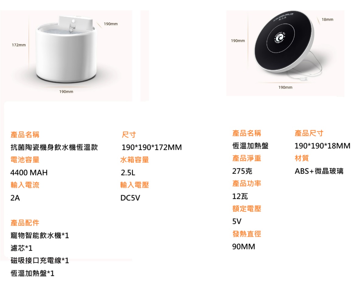 【Master 水族】猫狗飲水機 恒温底座 陶瓷機身 寵物喝水器 循環流動 可無線120天 加熱底盤 冬天必備 飲水機